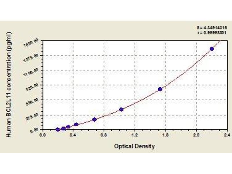 - Antibody specific for BCL2L11 has been pre-coated onto a microplate. Standards and samples are pipetted into the wells and any BCL2L11 present is bound by the immobilized antibody. After removing any unbound substances, a biotin-conjugated antibody specific for BCL2L11 is added to the wells. After washing, avidin conjugated Horseradish Peroxidase (HRP) is added to the wells. Following a wash to remove any unbound avidin-enzyme reagent, a substrate solution is added to the wells and color develops in proportion to the amount of BCL2L11 bound in the initial step. The color development is stopped and the intensity of the color is measured.