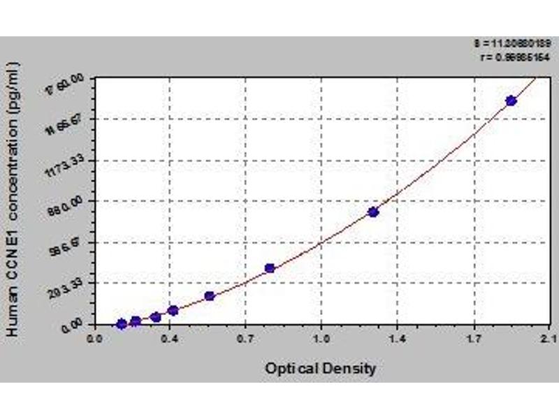 - Antibody specific for CCNE1 has been pre-coated onto a microplate. Standards and samples are pipetted into the wells and any CCNE1 present is bound by the immobilized antibody. After removing any unbound substances, a biotin-conjugated antibody specific for CCNE1 is added to the wells. After washing, avidin conjugated Horseradish Peroxidase (HRP) is added to the wells. Following a wash to remove any unbound avidin-enzyme reagent, a substrate solution is added to the wells and color develops in proportion to the amount of CCNE1 bound in the initial step. The color development is stopped and the intensity of the color is measured.