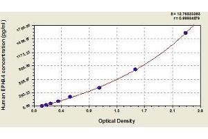 - Antibody specific for EPHA4 has been pre-coated onto a microplate. Standards and samples are pipetted into the wells and any EPHA4 present is bound by the immobilized antibody. After removing any unbound substances, a biotin-conjugated antibody specific for EPHA4 is added to the wells. After washing, avidin conjugated Horseradish Peroxidase (HRP) is added to the wells. Following a wash to remove any unbound avidin-enzyme reagent, a substrate solution is added to the wells and color develops in proportion to the amount of EPHA4 bound in the initial step. The color development is stopped and the intensity of the color is measured.