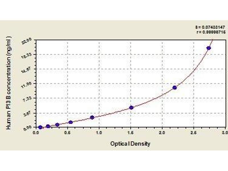 - Antibody specific for F13B has been pre-coated onto a microplate. Standards and samples are pipetted into the wells and any F13B present is bound by the immobilized antibody. After removing any unbound substances, a biotin-conjugated antibody specific for F13B is added to the wells. After washing, avidin conjugated Horseradish Peroxidase (HRP) is added to the wells. Following a wash to remove any unbound avidin-enzyme reagent, a substrate solution is added to the wells and color develops in proportion to the amount of F13B bound in the initial step. The color development is stopped and the intensity of the color is measured.