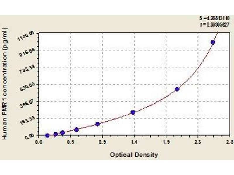 - This assay employs the quantitative sandwich enzyme immunoassay technique. Antibody specific for FMR1 has been pre-coated onto a microplate. Standards and samples are pipetted into the wells and any FMR1 present is bound by the immobilized antibody. After removing any unbound substances, a biotin-conjugated antibody specific for FMR1 is added to the wells. After washing, avidin conjugated Horseradish Peroxidase (HRP) is added to the wells. Following a wash to remove any unbound avidin-enzyme reagent, a substrate solution is added to the wells and color develops in proportion to the amount of FMR1 bound in the initial step. The color development is stopped and the intensity of the color is measured.