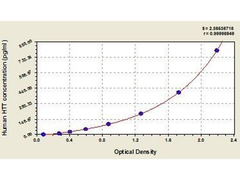 - This assay employs the quantitative sandwich enzyme immunoassay technique. Antibody specific for HTT has been pre-coated onto a microplate. Standards and samples are pipetted into the wells and any HTT present is bound by the immobilized antibody. After removing any unbound substances, a biotin-conjugated antibody specific for HTT is added to the wells. After washing, avidin conjugated Horseradish Peroxidase (HRP) is added to the wells. Following a wash to remove any unbound avidin-enzyme reagent, a substrate solution is added to the wells and color develops in proportion to the amount of HTT bound in the initial step. The color development is stopped and the intensity of the color is measured.