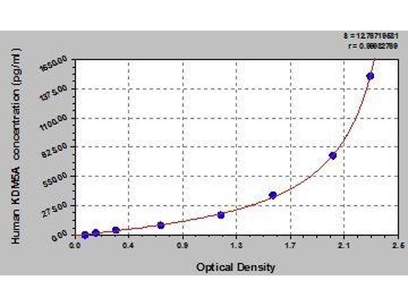 - Antibody specific for KDM5A has been pre-coated onto a microplate. Standards and samples are pipetted into the wells and any KDM5A present is bound by the immobilized antibody. After removing any unbound substances, a biotin-conjugated antibody specific for KDM5A is added to the wells. After washing, avidin conjugated Horseradish Peroxidase (HRP) is added to the wells. Following a wash to remove any unbound avidin-enzyme reagent, a substrate solution is added to the wells and color develops in proportion to the amount of KDM5A bound in the initial step. The color development is stopped and the intensity of the color is measured.