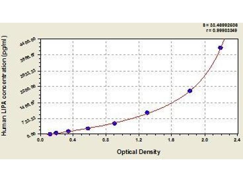 - Antibody specific for LIPA has been pre-coated onto a microplate. Standards and samples are pipetted into the wells and any LIPA present is bound by the immobilized antibody. After removing any unbound substances, a biotin-conjugated antibody specific for LIPA is added to the wells. After washing, avidin conjugated Horseradish Peroxidase (HRP) is added to the wells. Following a wash to remove any unbound avidin-enzyme reagent, a substrate solution is added to the wells and color develops in proportion to the amount of LIPA bound in the initial step. The color development is stopped and the intensity of the color is measured.