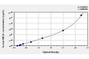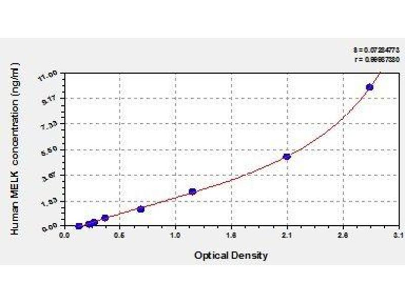 - Antibody specific for MELK has been pre-coated onto a microplate. Standards and samples are pipetted into the wells and any MELK present is bound by the immobilized antibody. After removing any unbound substances, a biotin-conjugated antibody specific for MELK is added to the wells. After washing, avidin conjugated Horseradish Peroxidase (HRP) is added to the wells. Following a wash to remove any unbound avidin-enzyme reagent, a substrate solution is added to the wells and color develops in proportion to the amount of MELK bound in the initial step. The color development is stopped and the intensity of the color is measured.