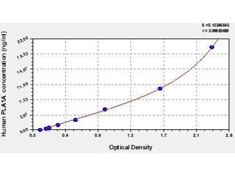 - Antibody specific for PLA1A has been pre-coated onto a microplate. Standards and samples are pipetted into the wells and any PLA1A present is bound by the immobilized antibody. After removing any unbound substances, a biotin-conjugated antibody specific for PLA1A is added to the wells. After washing, avidin conjugated Horseradish Peroxidase (HRP) is added to the wells. Following a wash to remove any unbound avidin-enzyme reagent, a substrate solution is added to the wells and color develops in proportion to the amount of PLA1A bound in the initial step. The color development is stopped and the intensity of the color is measured.