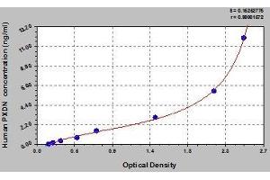 - This assay employs the quantitative sandwich enzyme immunoassay technique. Antibody specific for PXDN has been pre-coated onto a microplate. Standards and samples are pipetted into the wells and any PXDN present is bound by the immobilized antibody. After removing any unbound substances, a biotin-conjugated antibody specific for PXDN is added to the wells. After washing, avidin conjugated Horseradish Peroxidase (HRP) is added to the wells. Following a wash to remove any unbound avidin-enzyme reagent, a substrate solution is added to the wells and color develops in proportion to the amount of PXDN bound in the initial step. The color development is stopped and the intensity of the color is measured.