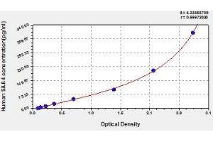 Create a standard curve by reducing the data using computer software capable of generating a four parameter logistic (4-PL) curve fit. As an alternative, construct a standard curve by plotting the mean absorbance for each standard on the x-axis against the concentration on the y-axis and draw a best fit curve through the points on the graph. The data may be linearized by plotting the log of the target antigen concentration versus the log of the O.D. and the best fit line can be determined by regression analysis. This procedure will produce an adequate but less precise fit of the data.