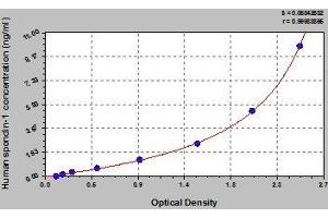 - This assay employs the quantitative sandwich enzyme immunoassay technique. Antibody specific for spondin-1 has been pre-coated onto a microplate. Standards and samples are pipetted into the wells and any spondin-1 present is bound by the immobilized antibody. After removing any unbound substances, a biotin-conjugated antibody specific for spondin-1 is added to the wells. After washing, avidin conjugated Horseradish Peroxidase (HRP) is added to the wells. Following a wash to remove any unbound avidin-enzyme reagent, a substrate solution is added to the wells and color develops in proportion to the amount of spondin-1 bound in the initial step. The color development is stopped and the intensity of the color is measured.