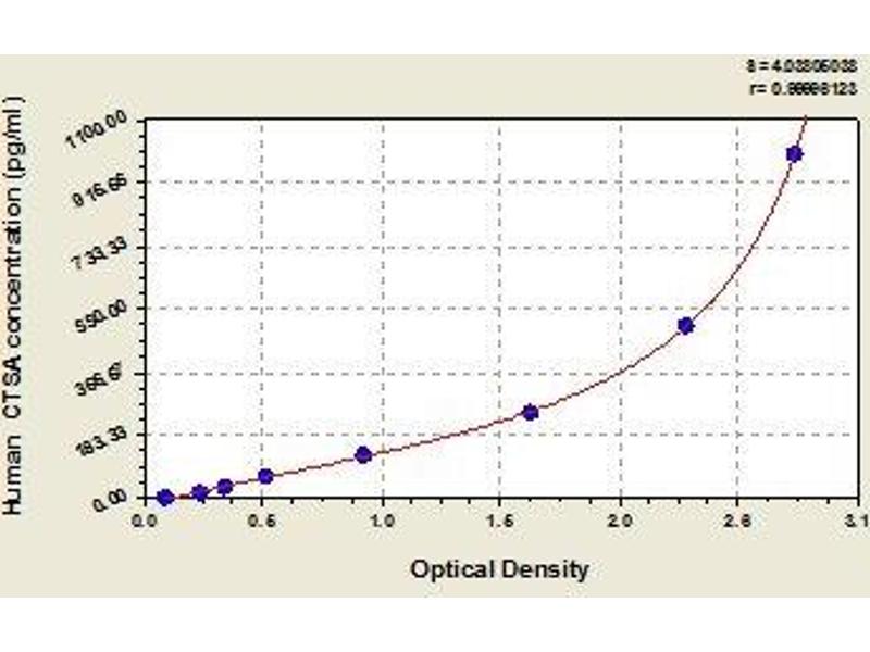 - Antibody specific for CTSA has been pre-coated onto a microplate. Standards and samples are pipetted into the wells and any CTSA present is bound by the immobilized antibody. After removing any unbound substances, a biotin-conjugated antibody specific for CTSA is added to the wells. After washing, avidin conjugated Horseradish Peroxidase (HRP) is added to the wells. Following a wash to remove any unbound avidin-enzyme reagent, a substrate solution is added to the wells and color develops in proportion to the amount of CTSA bound in the initial step. The color development is stopped and the intensity of the color is measured.