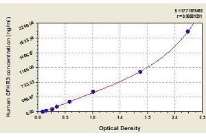 - Antibody specific for CFHR3 has been pre-coated onto a microplate. Standards and samples are pipetted into the wells and any CFHR3 present is bound by the immobilized antibody. After removing any unbound substances, a biotin-conjugated antibody specific for CFHR3 is added to the wells. After washing, avidin conjugated Horseradish Peroxidase (HRP) is added to the wells. Following a wash to remove any unbound avidin-enzyme reagent, a substrate solution is added to the wells and color develops in proportion to the amount of CFHR3 bound in the initial step. The color development is stopped and the intensity of the color is measured.