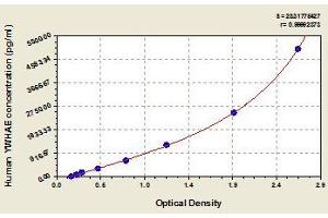 - Antibody specific for YWHAE has been pre-coated onto a microplate. Standards and samples are pipetted into the wells and any YWHAE present is bound by the immobilized antibody. After removing any unbound substances, a biotin-conjugated antibody specific for YWHAE is added to the wells. After washing, avidin conjugated Horseradish Peroxidase (HRP) is added to the wells. Following a wash to remove any unbound avidin-enzyme reagent, a substrate solution is added to the wells and color develops in proportion to the amount of YWHAE bound in the initial step. The color development is stopped and the intensity of the color is measured.