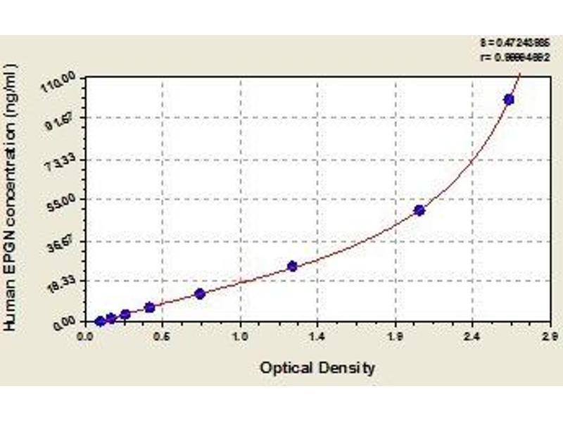 - Antibody specific for EPGN has been pre-coated onto a microplate. Standards and samples are pipetted into the wells and any EPGN present is bound by the immobilized antibody. After removing any unbound substances, a biotin-conjugated antibody specific for EPGN is added to the wells. After washing, avidin conjugated Horseradish Peroxidase (HRP) is added to the wells. Following a wash to remove any unbound avidin-enzyme reagent, a substrate solution is added to the wells and color develops in proportion to the amount of EPGN bound in the initial step. The color development is stopped and the intensity of the color is measured.