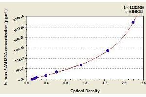 - Antibody specific for FAM132A has been pre-coated onto a microplate. Standards and samples are pipetted into the wells and any FAM132A present is bound by the immobilized antibody. After removing any unbound substances, a biotin-conjugated antibody specific for FAM132A is added to the wells. After washing, avidin conjugated Horseradish Peroxidase (HRP) is added to the wells. Following a wash to remove any unbound avidin-enzyme reagent, a substrate solution is added to the wells and color develops in proportion to the amount of FAM132A bound in the initial step. The color development is stopped and the intensity of the color is measured.