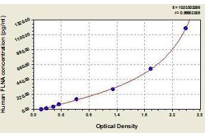 - This assay employs the quantitative sandwich enzyme immunoassay technique. Antibody specific for FLNA has been pre-coated onto a microplate. Standards and samples are pipetted into the wells and any FLNA present is bound by the immobilized antibody. After removing any unbound substances, a biotin-conjugated antibody specific for FLNA is added to the wells. After washing, avidin conjugated Horseradish Peroxidase (HRP) is added to the wells. Following a wash to remove any unbound avidin-enzyme reagent, a substrate solution is added to the wells and color develops in proportion to the amount of FLNA bound in the initial step. The color development is stopped and the intensity of the color is measured.