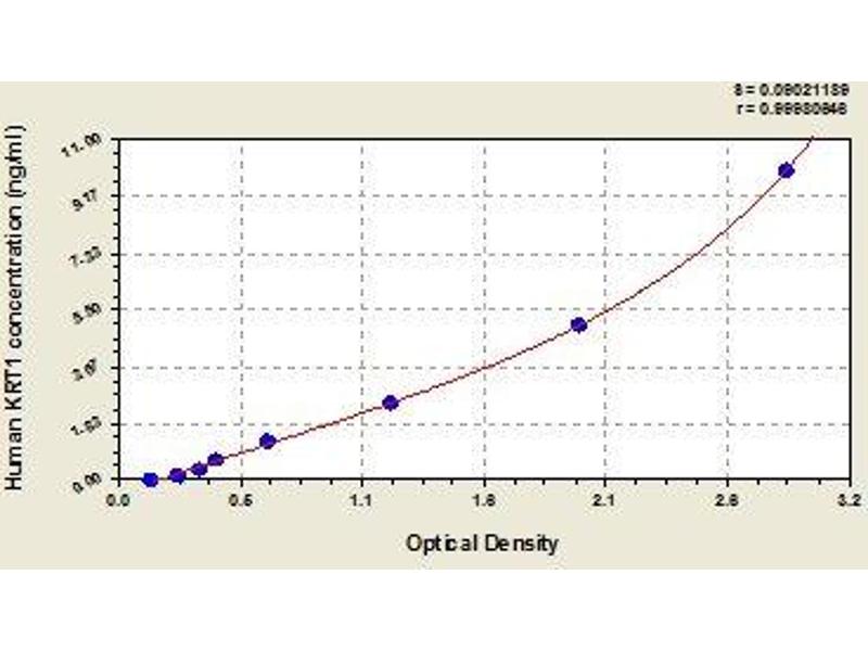 - Antibody specific for KRT1 has been pre-coated onto a microplate. Standards and samples are pipetted into the wells and any KRT1 present is bound by the immobilized antibody. After removing any unbound substances, a biotin-conjugated antibody specific for KRT1 is added to the wells. After washing, avidin conjugated Horseradish Peroxidase (HRP) is added to the wells. Following a wash to remove any unbound avidin-enzyme reagent, a substrate solution is added to the wells and color develops in proportion to the amount of KRT1 bound in the initial step. The color development is stopped and the intensity of the color is measured.