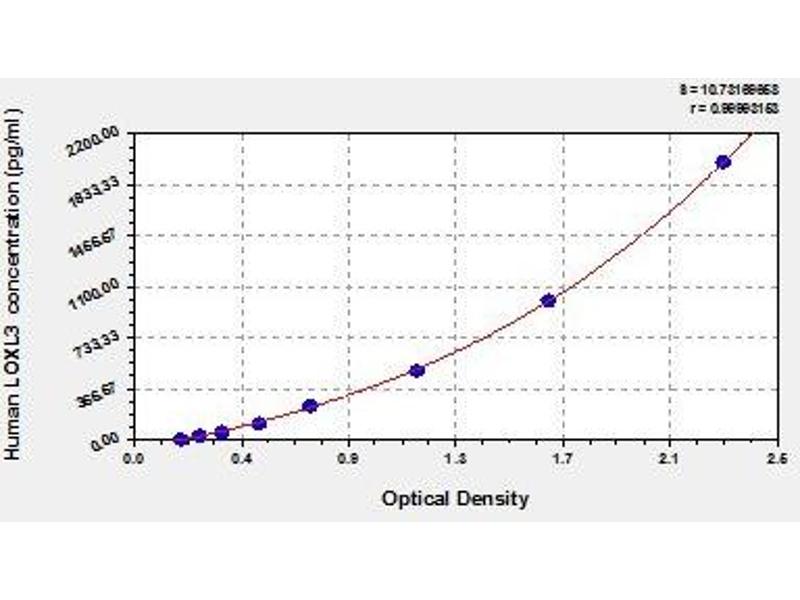 - Antibody specific for LOXL3 has been pre-coated onto a microplate. Standards and samples are pipetted into the wells and any LOXL3 present is bound by the immobilized antibody. After removing any unbound substances, a biotin-conjugated antibody specific for LOXL3 is added to the wells. After washing, avidin conjugated Horseradish Peroxidase (HRP) is added to the wells. Following a wash to remove any unbound avidin-enzyme reagent, a substrate solution is added to the wells and color develops in proportion to the amount of LOXL3 bound in the initial step. The color development is stopped and the intensity of the color is measured.