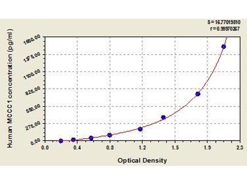 - Antibody specific for MCCC1 has been pre-coated onto a microplate. Standards and samples are pipetted into the wells and any MCCC1 present is bound by the immobilized antibody. After removing any unbound substances, a biotin-conjugated antibody specific for MCCC1 is added to the wells. After washing, avidin conjugated Horseradish Peroxidase (HRP) is added to the wells. Following a wash to remove any unbound avidin-enzyme reagent, a substrate solution is added to the wells and color develops in proportion to the amount of MCCC1 bound in the initial step. The color development is stopped and the intensity of the color is measured.