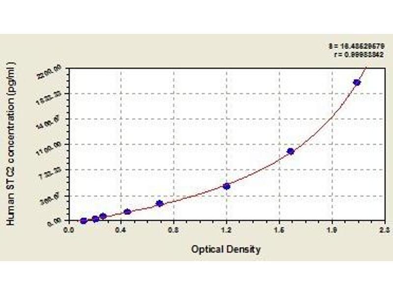 - Antibody specific for STC2 has been pre-coated onto a microplate. Standards and samples are pipetted into the wells and any STC2 present is bound by the immobilized antibody. After removing any unbound substances, a biotin-conjugated antibody specific for STC2 is added to the wells. After washing, avidin conjugated Horseradish Peroxidase (HRP) is added to the wells. Following a wash to remove any unbound avidin-enzyme reagent, a substrate solution is added to the wells and color develops in proportion to the amount of STC2 bound in the initial step. The color development is stopped and the intensity of the color is measured.