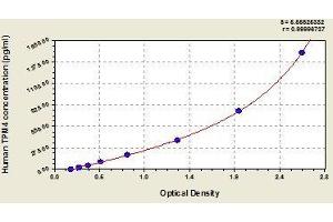- Antibody specific for TPM4 has been pre-coated onto a microplate. Standards and samples are pipetted into the wells and any TPM4 present is bound by the immobilized antibody. After removing any unbound substances, a biotin-conjugated antibody specific for TPM4 is added to the wells. After washing, avidin conjugated Horseradish Peroxidase (HRP) is added to the wells. Following a wash to remove any unbound avidin-enzyme reagent, a substrate solution is added to the wells and color develops in proportion to the amount of TPM4 bound in the initial step. The color development is stopped and the intensity of the color is measured.