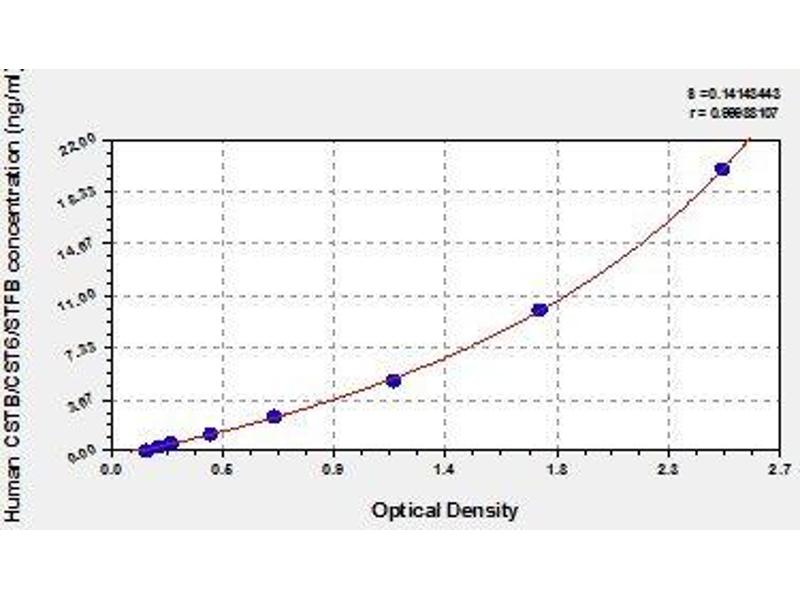 - Antibody specific for CSTB has been pre-coated onto a microplate. Standards and samples are pipetted into the wells and any CSTB present is bound by the immobilized antibody. After removing any unbound substances, a biotin-conjugated antibody specific for CSTB is added to the wells. After washing, avidin conjugated Horseradish Peroxidase (HRP) is added to the wells. Following a wash to remove any unbound avidin-enzyme reagent, a substrate solution is added to the wells and color develops in proportion to the amount of CSTB bound in the initial step. The color development is stopped and the intensity of the color is measured.