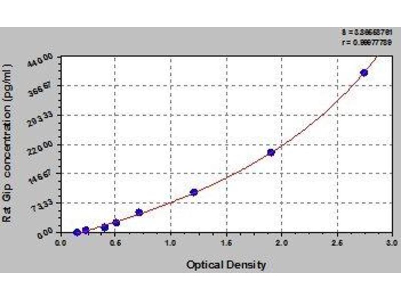 - Antibody specific for Gip has been pre-coated onto a microplate. Standards and samples are pipetted into the wells and any Gip present is bound by the immobilized antibody. After removing any unbound substances, a biotin-conjugated antibody specific for Gip is added to the wells. After washing, avidin conjugated Horseradish Peroxidase (HRP) is added to the wells. Following a wash to remove any unbound avidin-enzyme reagent, a substrate solution is added to the wells and color develops in proportion to the amount of Gip bound in the initial step. The color development is stopped and the intensity of the color is measured.