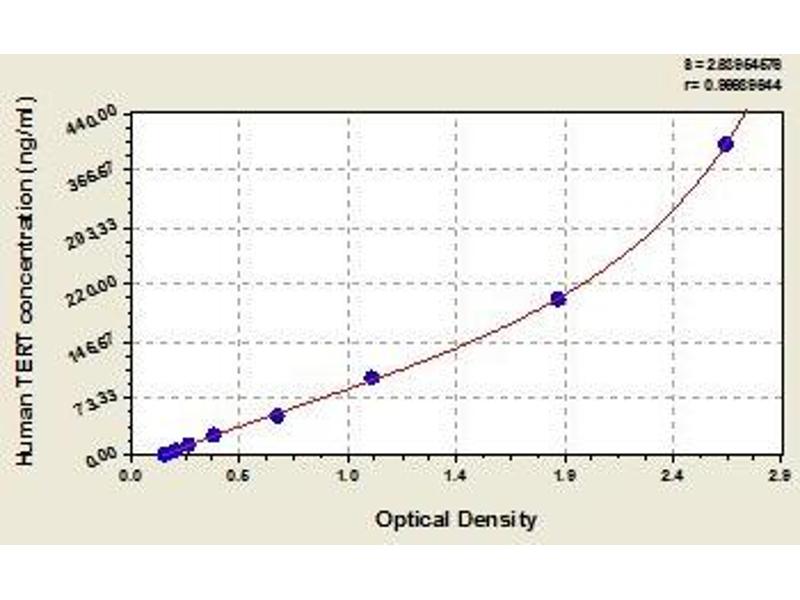 - This assay employs the quantitative sandwich enzyme immunoassay technique. Antibody specific for TERT has been pre-coated onto a microplate. Standards and samples are pipetted into the wells and any TERT present is bound by the immobilized antibody. After removing any unbound substances, a biotin-conjugated antibody specific for TERT is added to the wells. After washing, avidin conjugated Horseradish Peroxidase (HRP) is added to the wells. Following a wash to remove any unbound avidin-enzyme reagent, a substrate solution is added to the wells and color develops in proportion to the amount of TERT bound in the initial step. The color development is stopped and the intensity of the color is measured.