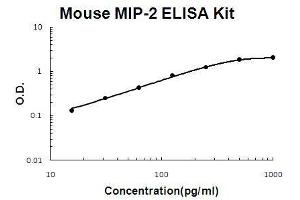 - mouse MIP-2 ELISA Kit was based on standard sandwich enzyme-linked immune-sorbent assay technology. A monoclonal antibody from rat specific for MIP-2 has been precoated onto 96-well plates. Standards(E.coli, A28-N100) and test samples are added to the wells, a biotinylated detection polyclonal antibody from goat specific for MIP-2 is added subsequently and then followed by washing with PBS or TBS buffer. Avidin-Biotin-Peroxidase Complex was added and unbound conjugates were washed away with PBS or TBS buffer. HRP substrate TMB was used to visualize HRP enzymatic reaction. TMB was catalyzed by HRP to produce a blue color product that changed into yellow after adding acidic stop solution. The density of yellow is proportional to the mouse MIP-2 amount of sample captured in plate.