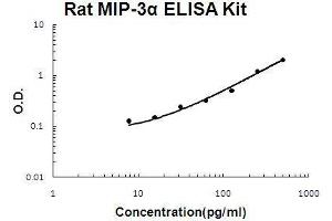 - rat MIP-3 alpha ELISA Kit was based on standard sandwich enzyme-linked immune-sorbent assay technology. A monoclonal antibody from mouse specific for MIP-3 alpha has been precoated onto 96-well plates. Standards(E.coli, S27-M96) and test samples are added to the wells, a biotinylated detection polyclonal antibody from goat specific for MIP-3 alpha is added subsequently and then followed by washing with PBS or TBS buffer. Avidin-Biotin-Peroxidase Complex was added and unbound conjugates were washed away with PBS or TBS buffer. HRP substrate TMB was used to visualize HRP enzymatic reaction. TMB was catalyzed by HRP to produce a blue color product that changed into yellow after adding acidic stop solution. The density of yellow is proportional to the rat MIP-3 alpha amount of sample captured in plate.