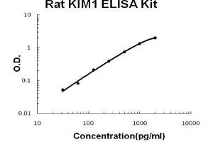 - rat KIM1 ELISA Kit was based on standard sandwich enzyme-linked immune-sorbent assay technology. A monoclonal antibody from mouse specific for KIM1 has been precoated onto 96-well plates. Standards(NSO, S18-V238) and test samples are added to the wells, a biotinylated detection polyclonal antibody from goat specific for KIM1 is added subsequently and then followed by washing with PBS or TBS buffer. Avidin-Biotin-Peroxidase Complex was added and unbound conjugates were washed away with PBS or TBS buffer. HRP substrate TMB was used to visualize HRP enzymatic reaction. TMB was catalyzed by HRP to produce a blue color product that changed into yellow after adding acidic stop solution. The density of yellow is proportional to the rat KIM1 amount of sample captured in plate.