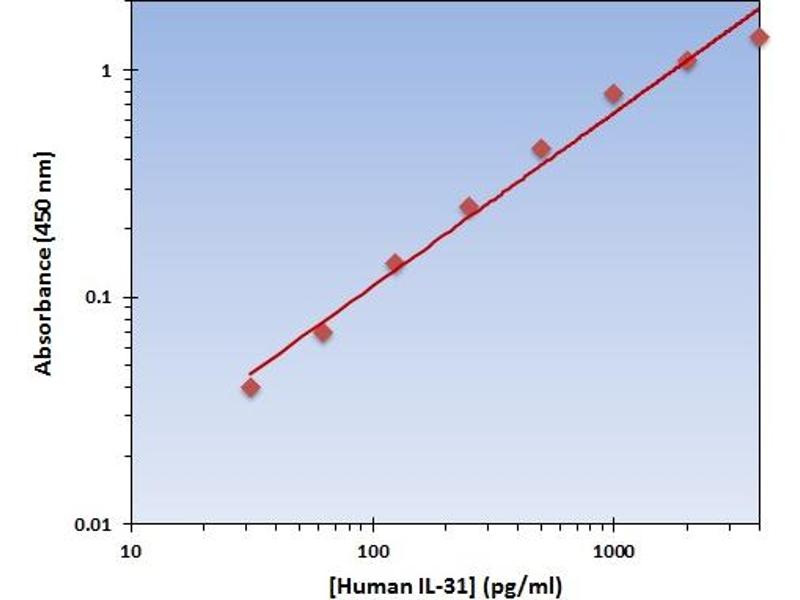 - The Human IL-31 ELISA Kit allows for the detection and quantification of endogenous levels of natural and/or recombinant Human IL-31 proteins within the range of 32-4000 pg/mL.