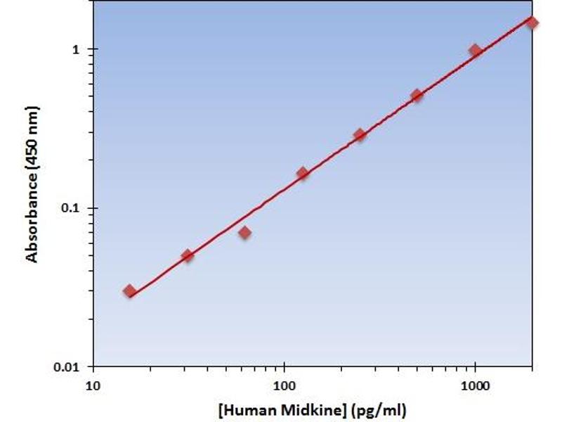 - The Human Midkine ELISA Kit allows for the detection and quantification of endogenous levels of natural and/or recombinant Human Midkine proteins within the range of 32-2000 pg/mL.