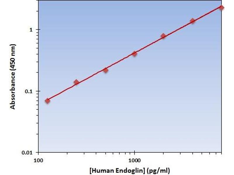 - The Human Endoglin ELISA Kit allows for the detection and quantification of endogenous levels of natural and/or recombinant Human Endoglin proteins within the range of 125-8000 pg/mL.