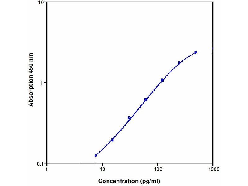 Create a calibration curve by plotting the mean absorbance for each calibrator concentration on the ordinate against the sCD40 concentration on the abscissa. Draw a best-fit curve through the points of the graph (a 5-parameter curve fit is recommended).