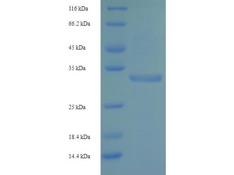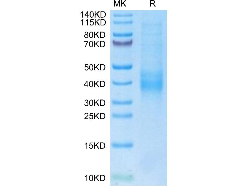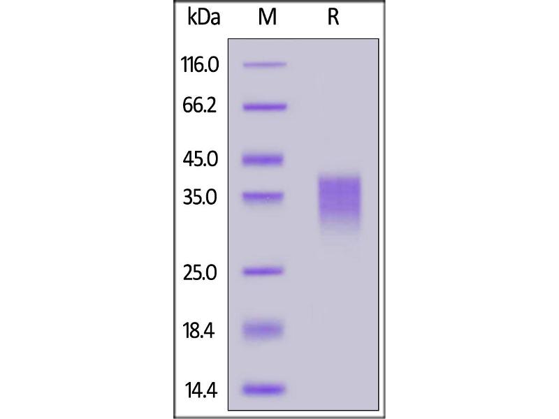 The purity of the protein is greater than 95 % as determined by SDS-PAGE and Coomassie blue staining.