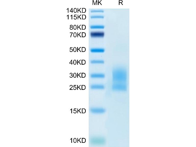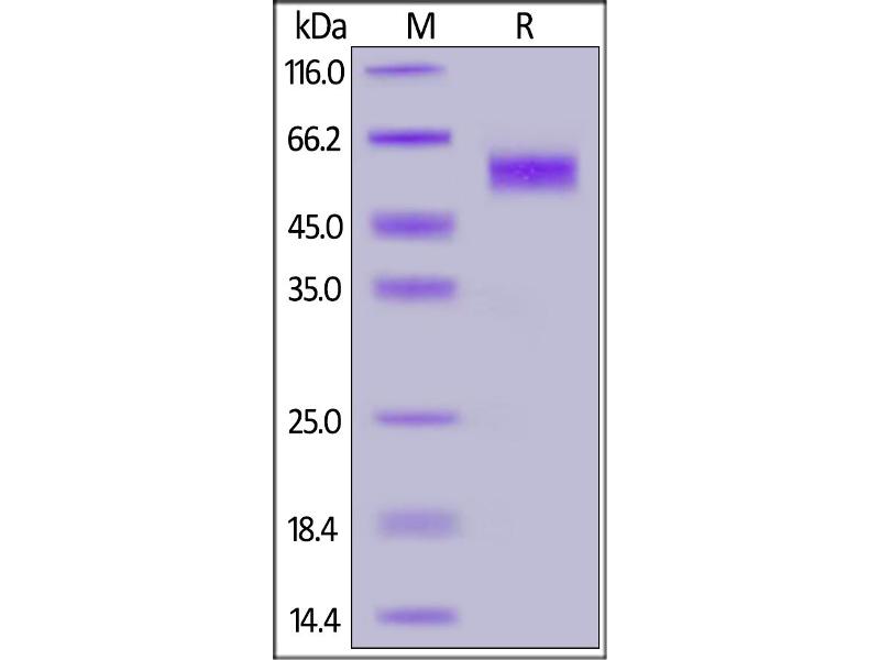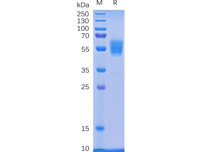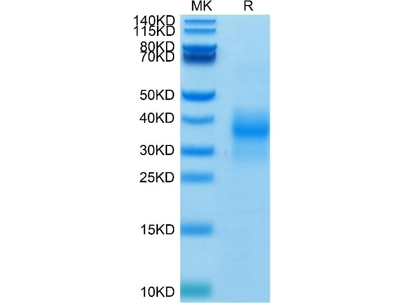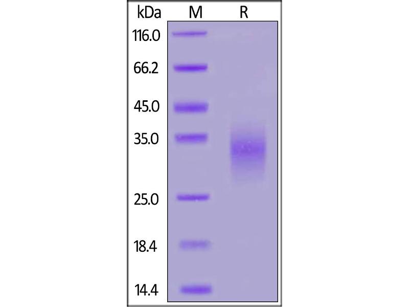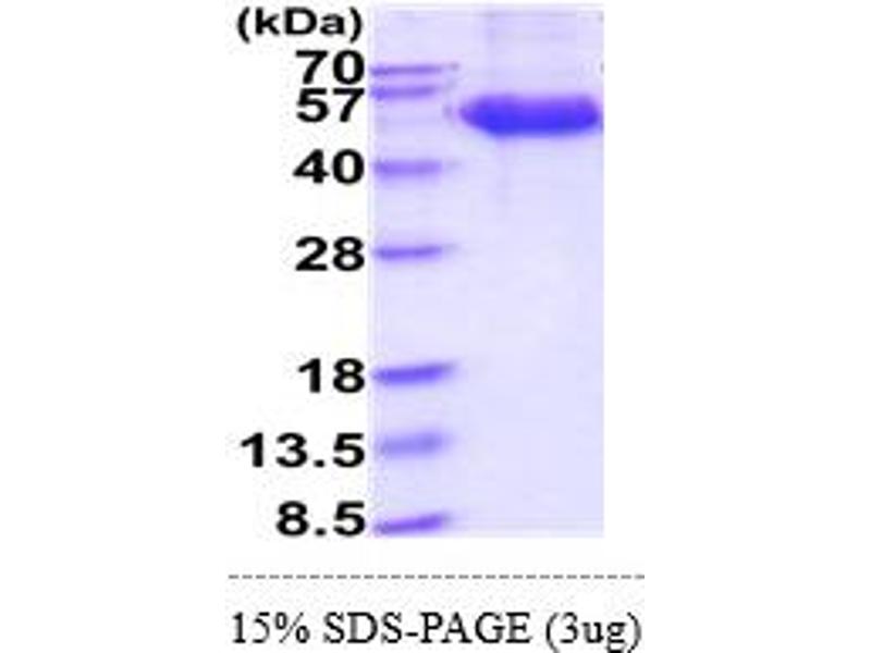 The purity of the protein is greater than 95 % as determined by SDS-PAGE and Coomassie blue staining.