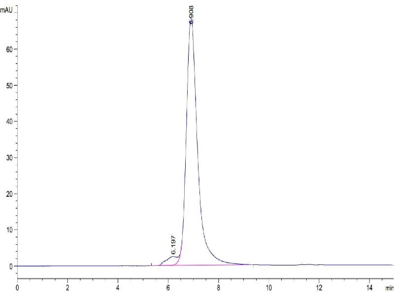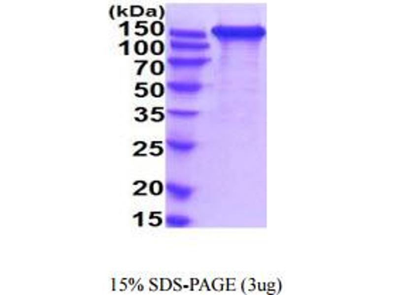 The purity of the protein is greater than 95 % as determined by SDS-PAGE and Coomassie blue staining.