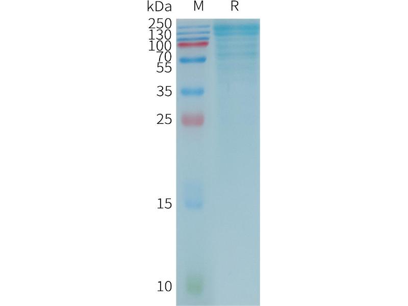 The purity of the protein is greater than 85 % as determined by SDS-PAGE and Coomassie blue staining.