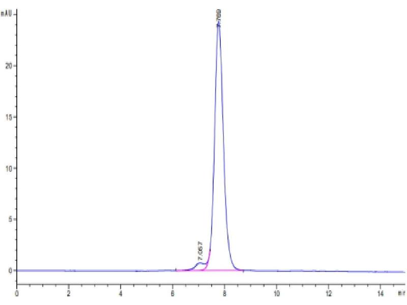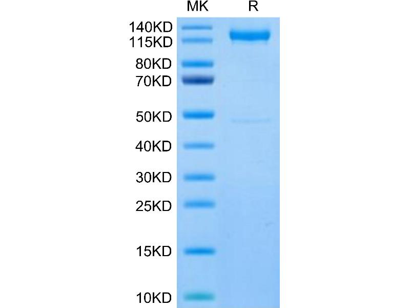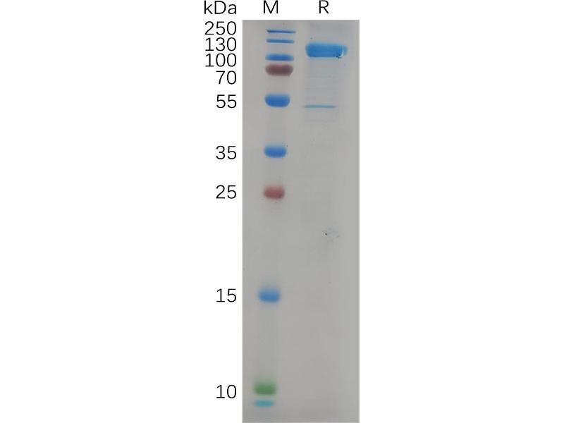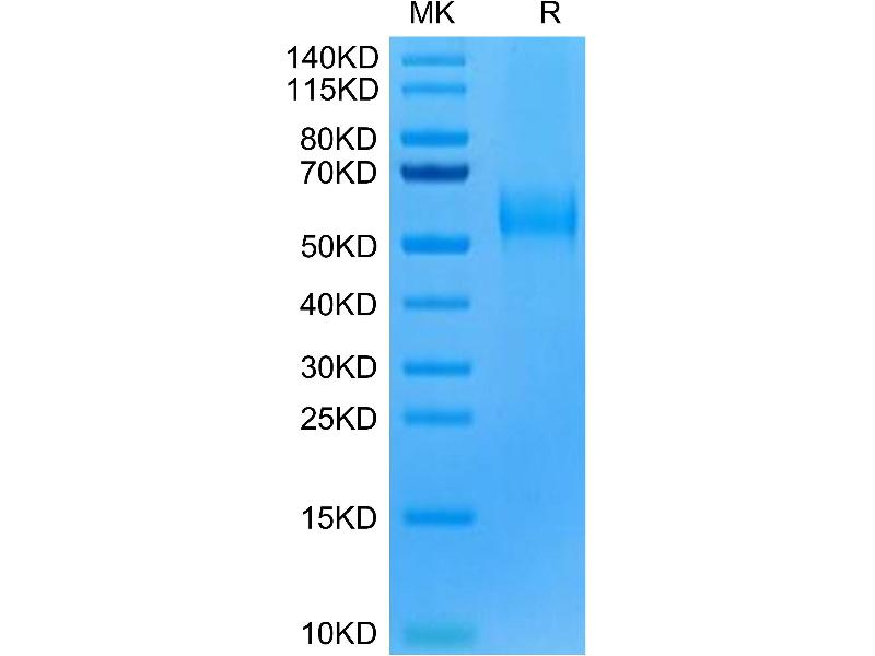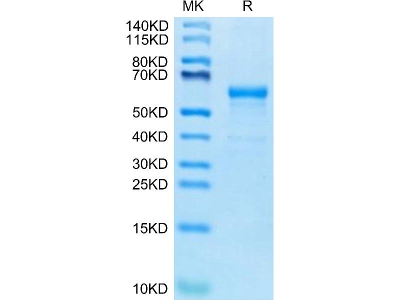 The purity of the protein is greater than 95 % as determined by SDS-PAGE and Coomassie blue staining.