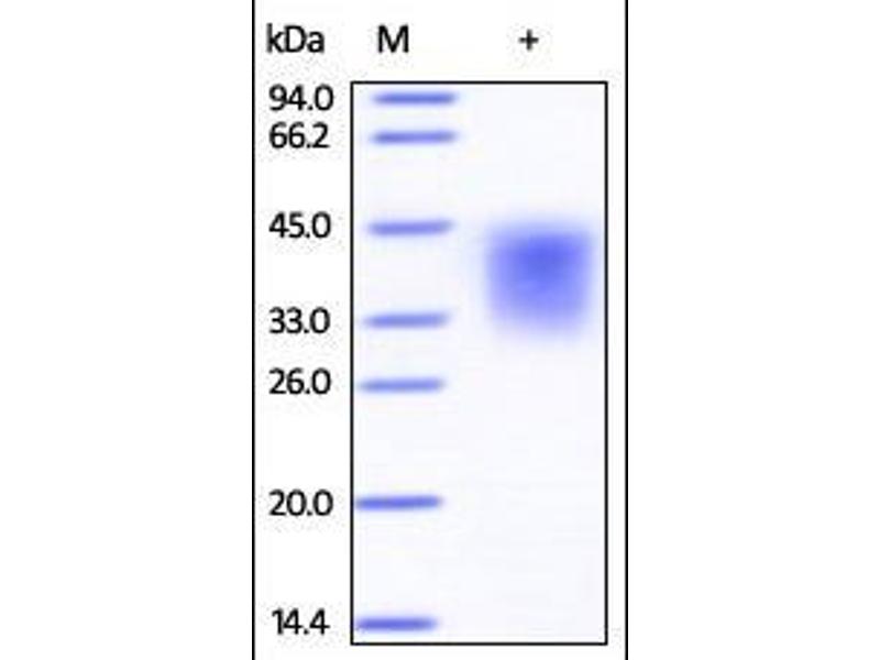 The purity of the protein is greater than 95 % as determined by SDS-PAGE and Coomassie blue staining.