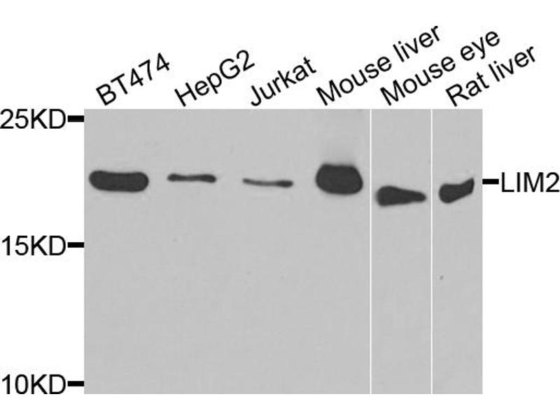 : "Expressed sequence tag analysis of adult human lens for the NEIBank Project: over 2000 non-redundant transcripts, novel genes and splice variants." in: Molecular vision, Vol. 8, pp. 171-84, (2002) (PubMed).Aliase für LIM2 Antikörper