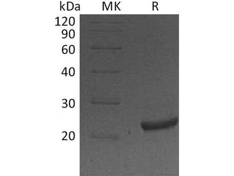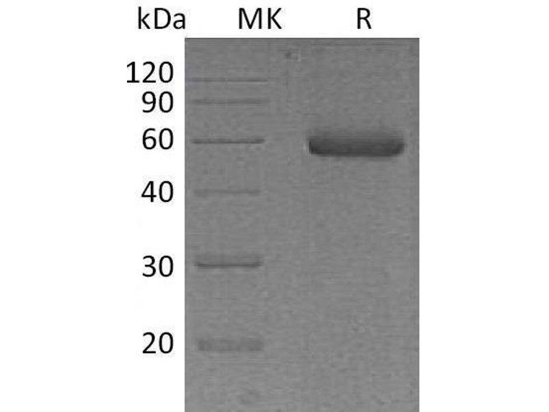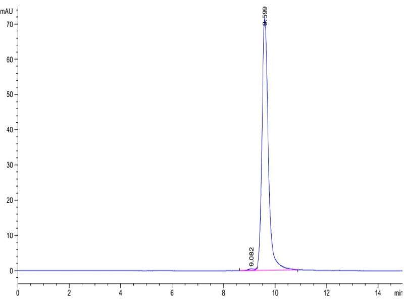 The purity of the protein is greater than 95 % as determined by SDS-PAGE and Coomassie blue staining.
