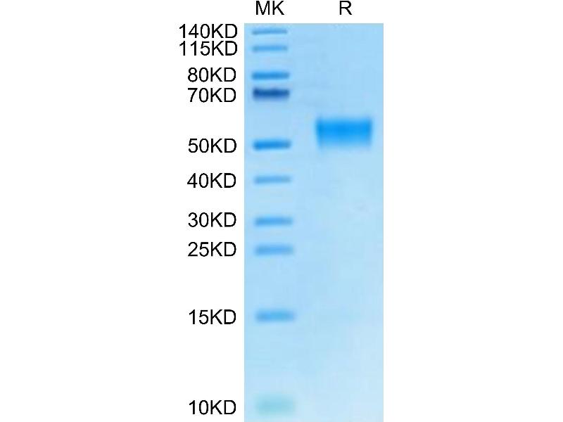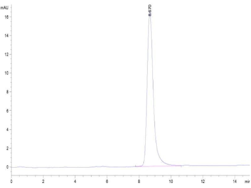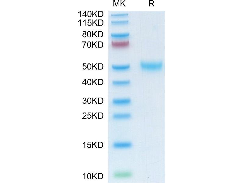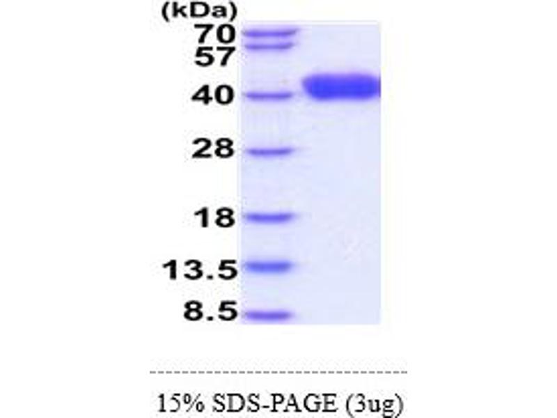The purity of the protein is greater than 85 % as determined by SDS-PAGE and Coomassie blue staining.