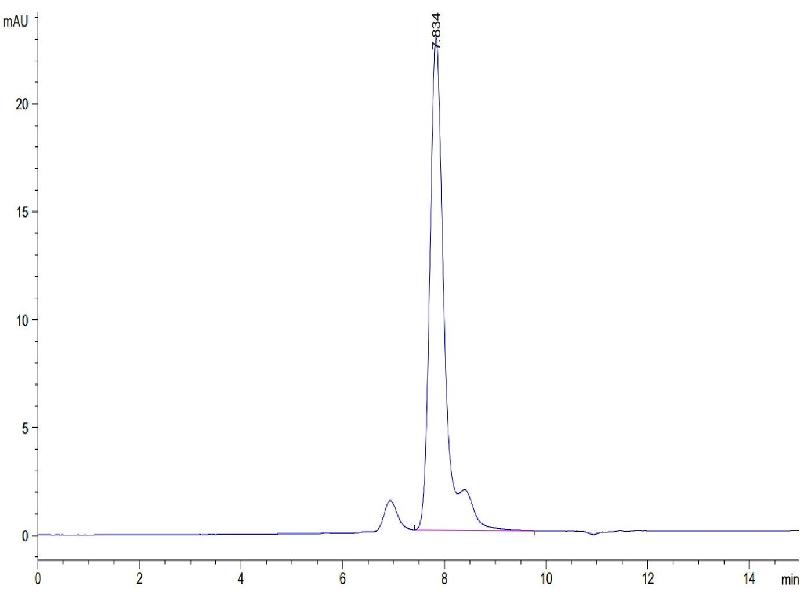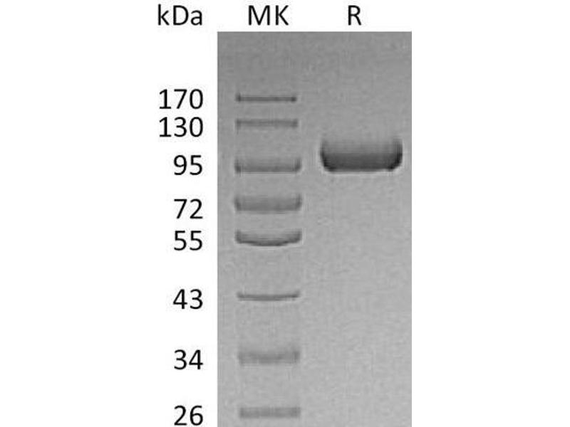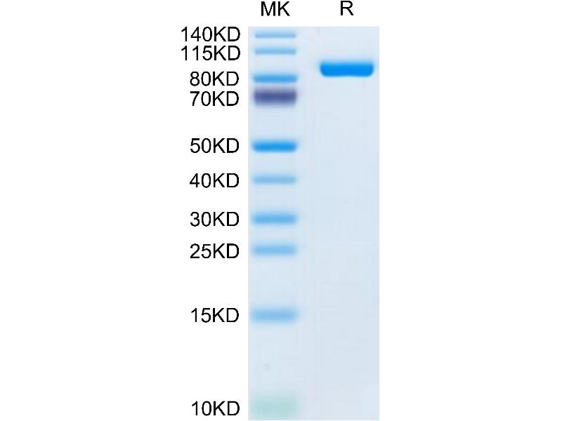 The purity of the protein is greater than 85 % as determined by SDS-PAGE and Coomassie blue staining.