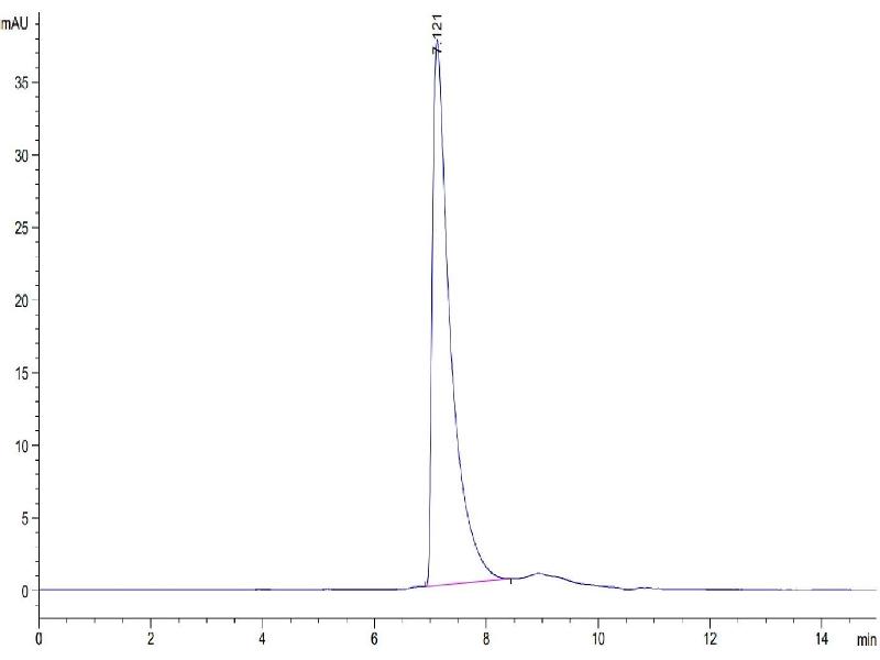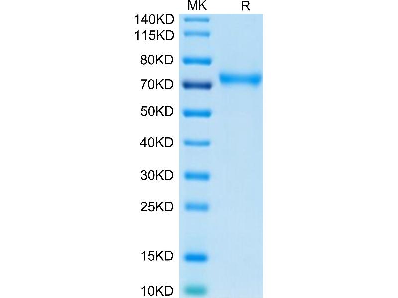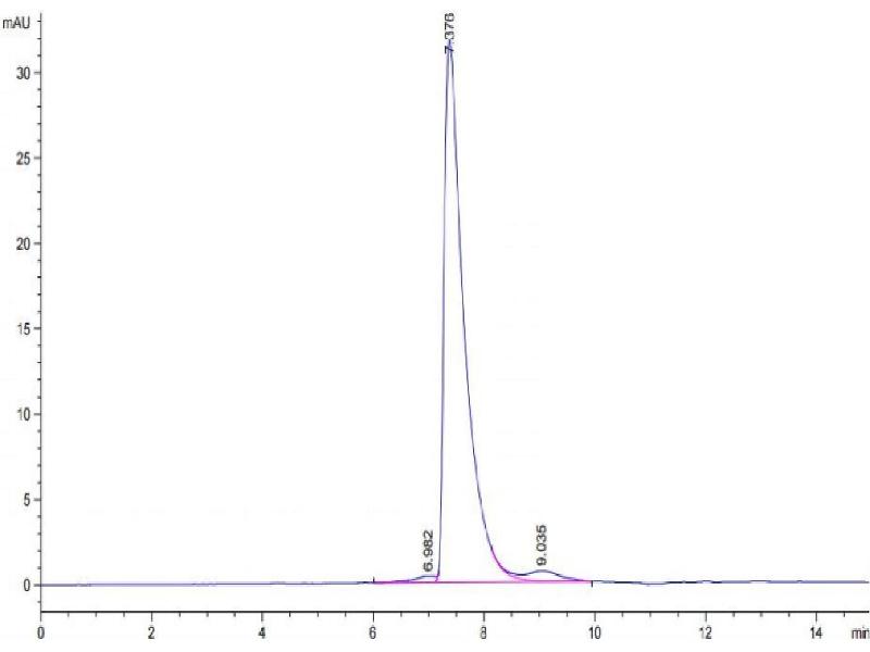 The purity of the protein is greater than 90 % as determined by SDS-PAGE and Coomassie blue staining.