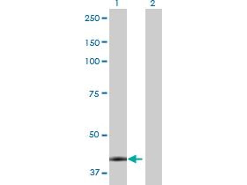 Product Quality tested by: Transient overexpression cell lysate was tested with Anti-CA12 antibody by Western Blots.