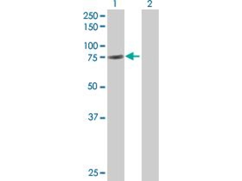 Product Quality tested by: Transient overexpression cell lysate was tested with Anti-GAS6 antibody by Western Blots.