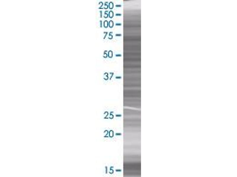 Product Quality tested by: Transient overexpression cell lysate was tested with Anti-RPA3 antibody by Western Blots.