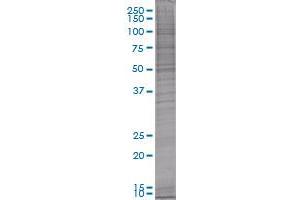 Product Quality tested by: Transient overexpression cell lysate was tested with Anti-SFRS2 antibody by Western Blots.