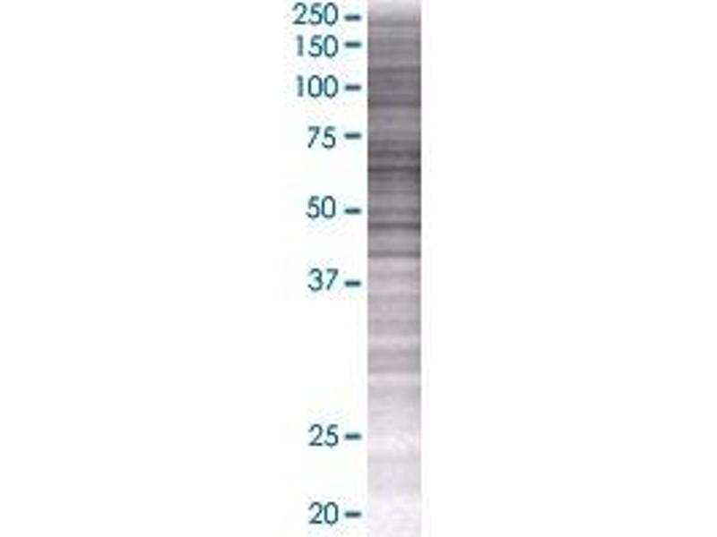 Product Quality tested by: Transient overexpression cell lysate was tested with Anti-TBCD antibody by Western Blots.